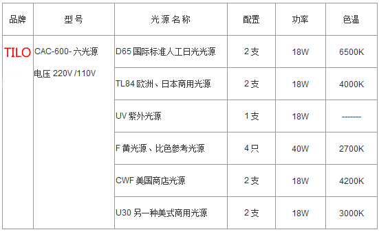 标准光源对色灯箱参数: 尺寸mm(长×宽×?:710×540×625 重量:35kg 可选购配件:其他各种客户指定光源 45度标准看?/span>