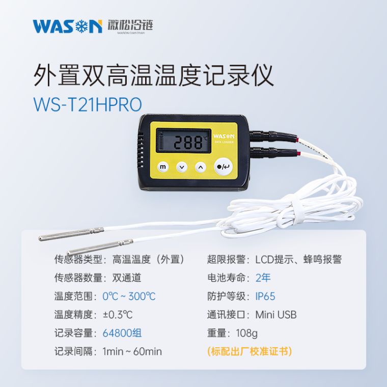 微松微松PRO系列温湿度记录仪是一款数据自动存储的单机型精密仪表。该仪表采用低功耗设计,待机时间长;双腔结构,防水等级高;传感器型号多,检测范围广。使用C-mi软件可实现参数设置、数据下载、数据分析、数据导出等功能,也可不使用C-mi软件直接从记录仪内拷贝CSV格式数据。广泛应用于食品医药、冷链物流、化工电子、档案文博、农业科研等领域、/p>