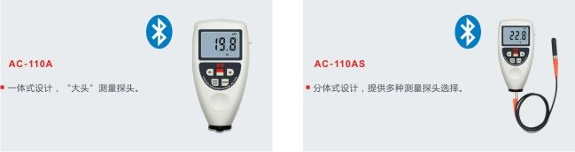 安妙涂层测厚?标准?分为两个类型:AC-110A(整体?、AC-110AS(分体?;应用广泛、测量准确,几乎可以测量所有的基体,无论是铁基还是非铁基;并且带有USB数据连接和蓝牙传输功能;整体式仪器适合单手操作并且测量更加稳定,因为在测量中,大类型探头的大接触面具有更好的稳定性,使用户得到一个持续且重复性强的精确测量结果;分体式提供多种探头,测量机动性更强、/span>