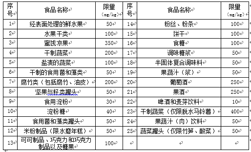 GB 2760《食品添加剂使用卫生标准》是规定各食品二氧化硫限量标准: