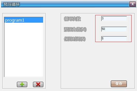 点?”号可以添加新的编程、br/>依次输入 次数,压力,保持时间即可,每次会自动执行如下步骤?.上升到达 预压力?.保持该力 (保持时间)?.下降到达下限?.完成当次循环