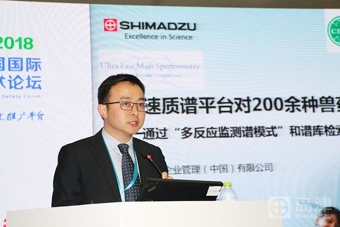 在下午举办的“农兽药残留检测技术”专题论坛中,岛津企业管理(中国)有限公司LC/LCMS技术专家尹宏瑞发表了主题报告《岛津超快速质谱平台UFMS?00余种兽药残留的同时检测》,详细介绍了超快速质谱平台UFMS在兽药残留检测中的应用和解决方案。基于LC-MS/MS技术的多反应监测(MRM)具备高选择性、灵敏度和良好耐用性,因此被广泛用于三重四极杆系统对目标化合物进行定量分析。在食品安全等监管领域中,越来越需要通过增加单次分析测定的残留药物数量以加强日常监管能力,同时尽可能提高化合物鉴别准确度以降低错误检测报告发生率。欧盟农药分析鉴别标准SANTE/11945/2015要求至少2个MRM离子对的保留时间和离子比在可接受容许限度内。然而,即使执行该标准,仍有大量报道表明某些农药或农产品分析中会出现假阳性结果。为帮助降低兽药及农药残留检测中假阳性和假阴性报告的发生率,岛津通过增加常规多反应监测方法中所监测碎片离子对数量(即“多反应监测谱模式”)并配合谱库检索功能,极大提高分析方法的专属性和报告准确度,该方法称为“多反应监测谱模式”。与传统方法仅监?-3个碎片离子不同,“多反应监测谱模式”采用的分析流程对各目标农药分子?-10个碎片离子对、兽药分?0-11个碎片离子对进行监测。通过对更多数量的碎片离子对进行采集,获得各目标分子相应的裂解谱。该裂解谱可用于常规谱库检索,通过采用其与标准谱库比对的匹配得分可进行化合物确认。应用“MRM谱模式”可在不影响检测限、线性和重复性的前提下,更好的避免假阳性及假阴性结果、/span>