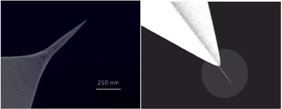 原子力显微镜是通过检测探针针尖与样品间的作用力获得表面信息。因此,提高对此作用力的检测精度就是提高AFM分辨率的核心问题。为此,探针针尖做得越来越细、/span>