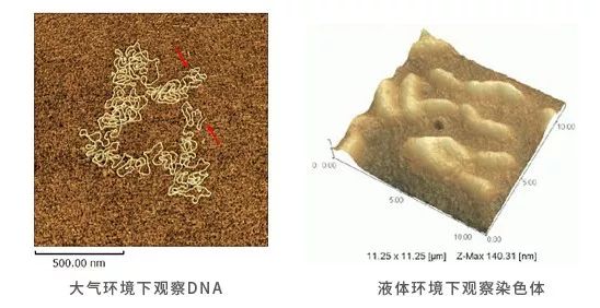 该仪器不仅对云母这种质地坚硬的样品可以在低Q值环境中(液体环境)获得原子图像,对于很柔软的样品,在类似的环境中,也可以达到调幅模式无法企及的分辨率。扫描缓冲溶液中的DNA双链,其双螺旋结构特有的大沟小沟清晰可见,而且,每个螺旋上的碱基数目也历历在目,与理论模型完全吻合、/span>