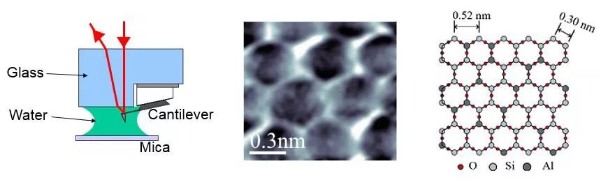 为了测试APM-8100FM的分辨率,对液体环境中的云母进行了扫描,可以稳定且清晰地得到典型的六边形结构,边?.3nm左右、/span>