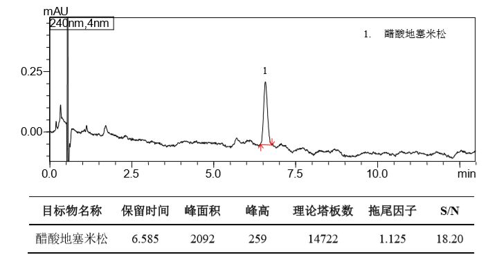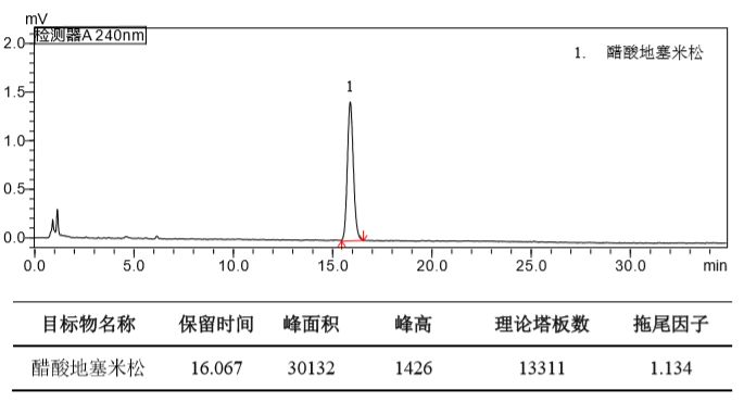 按照上述色谱条件(1.3.1)进行采集,色谱图如下9/p>