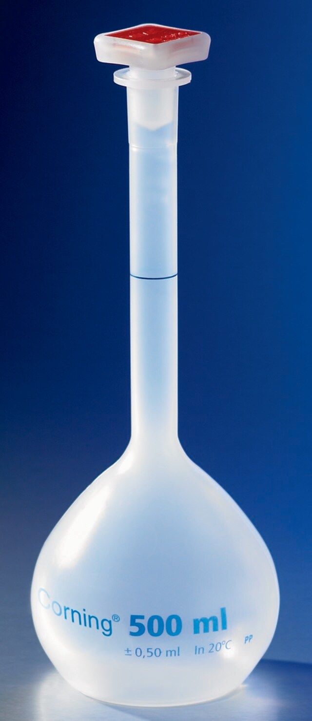 Transluscent flask is supplied with tapered polypropylene stopper with an individually calibrated graduation line. The product is manufactured to Class B tolerances as defined by ISO 1042. Exposure to temperatures above 60 may affect accuracy. Recommended routine cleaning up to 60 ?C will preserve graduations. Height dimension is for flask only, without stopper.