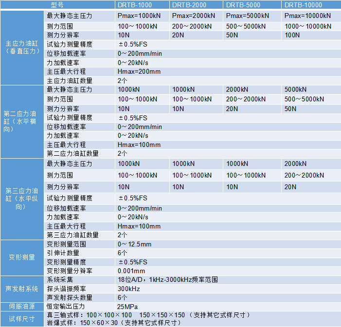 ? 试验系统具有单轴试验、双轴试验、真三轴加载试验、真三轴卸荷式岩爆试验、加载式岩爆试验、直剪试验、拉剪试验功能,还可根据用户需求,定制其他试验功能(如两刚一柔真三轴试验、真三轴渗透试验等)、/p>