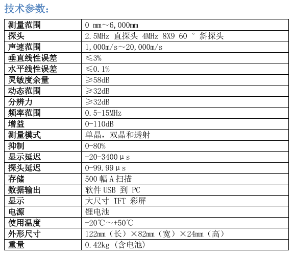 产品特点 1. 迷你测厚仪和探伤仪,仅重0.42Kg 技术参?/strong>