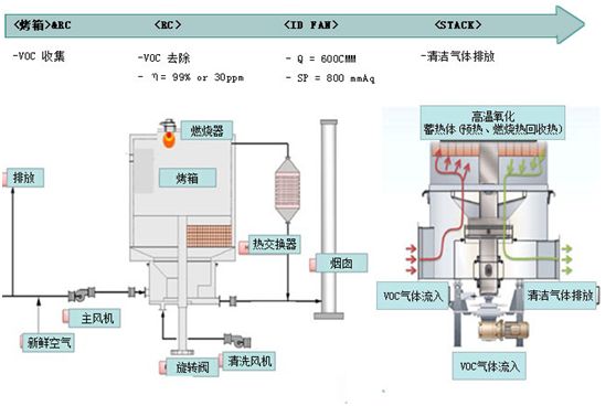 工艺原ç†ï¼™ü/strong> â‘ æ˜¯æŠŠæœ‰æœºåºŸæ°”åŠ çƒåˆ°760℃以上,åœç•™æ—¶é—´å¤§äºŽ1秒,使废气ä¸çš„VOCs在氧化分解æˆäºŒæ°§åŒ–碳和水ã€ü/span> ②氧化产生的高温气体æµç»ç‰¹åˆ¶çš„é™¶ç“·è“„çƒä½“ï¼Œä½¿é™¶ç“·ä½“å‡æ¸©è€Œâ€œè“„çƒâ€ï¼Œæ¤â€œè“„çƒâ€ç”¨äºŽé¢„çƒåŽç»è¿›å…¥ç‚‰ä½“的有机废气,从而节çœåºŸæ°”凿¸©çš„燃料消耗,é™ä½Žè¿è¡Œæˆæœ¬ã€ü/span> ③陶瓷蓄çƒä½“应分æˆä¸‰åŒºï¼Œæ¯ä¸ªè“„çƒå®¤ä¾æ¬¡ç»åŽ†è“„çƒ?放çƒ-清扫ç‰ç¨‹åºï¼Œå‘¨è€Œå¤å§‹ï¼Œè¿žç»å·¥ä½œã€‚è“„çƒå®¤â€œæ”¾çƒâ€åŽåº”ç«‹å³å¼•入适釿´å‡€ç©ºæ°”对该蓄çƒå®¤è¿›è¡Œæ¸…æ‰?以ä¿è¯VOCs去除率在99%以上)ï¼Œåªæœ‰å¾…清扫完æˆåŽæ‰èƒ½è¿›å…¥â€œè“„çƒâ€ç¨‹åºã€ü/span> ④冷å¯åЍ预çƒé€šè¿‡ç‡ƒçƒ§å™¨ç³»ç»Ÿæé«˜ç‚‰æ¸©ï¼Œæ£å¸¸è¿è¡Œæ—¶å¤§éƒ¨åˆ†çƒé‡èƒ½è¢«è“„çƒé™¶ç“·åºŠå›žæ”¶ï¼Œå½“废气ä¸å¯ç‡ƒæˆåˆ†æµ“度过低时,ä¾é 燃烧辅助燃料(柴油或天然气)æ¥æå‡ç‚‰è†›æ¸©åº¦ã€‚当炉膛温度过高时,å¯ç”±ç‚‰è†›æ¸©åº¦æŽ§åˆ¶çš„高温排空阀门将部分çƒé‡é‡Šæ”¾ã€ü/span>