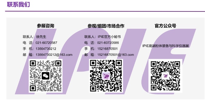 IPIE粉体装备与仪器展将聚焦‛/span>无粉不成杏/strong>”主题,集中展示粉体材料、粉体工艺及技术、粉体加工关键设备、产线配套设备及相关的科学仪器等全产业链整体解决方案,汇集行业知名专?教授、业界龙头企业、技术专家与企业高管共同参与,是一年一度中国粉体与仪器行业极具影响力的盛会!