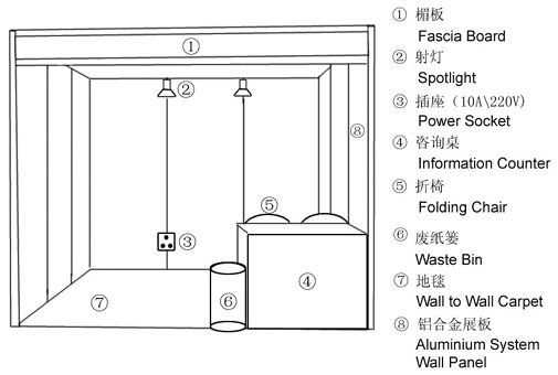 标准展位费用:包括展出场地?.5m高壁板、楣牌制作?平方米地毯、洽谈桌一张、椅子二 把?0A/220V单相插座一个,射灯二支