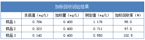 ?种不同质量浓度水样中分别加入0.400 mg/L的磷标准溶液,用石墨消解法处理,测定加标回收率,结果符合《地表水和污水监测技术规范》实验室质量控制要求、/p>
