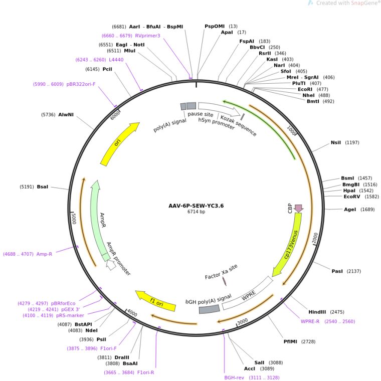 质粒名称9/strong>AAV-6P-SEW-YC3.6