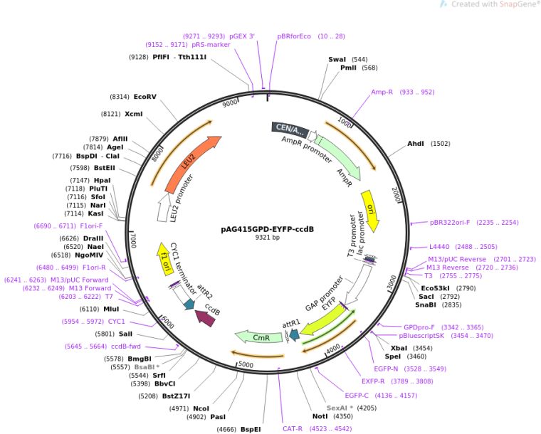 质粒名称9/strong>pAG415GPD-EYFP-ccdB