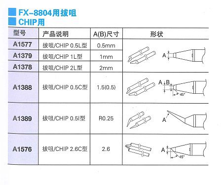* 必须配合FX888D电焊台使用及另外购买 FH800-04BY 镊子插座、/p> 其他 可更换配仵/strong>