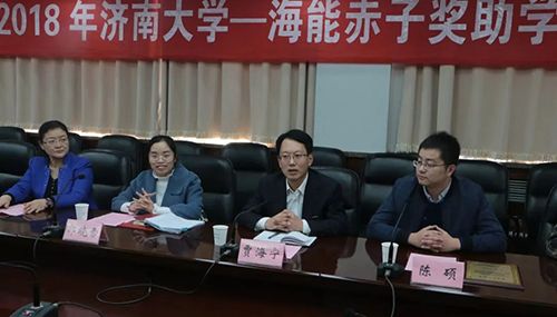11?3日,2018年度济南大学—海能赤子奖助学金颁奖座谈会在济南大学行政楼901会议室举办,济南大学相关领导、老师、学生代表及海能仪器代表参加颁奖座谈会、/p>