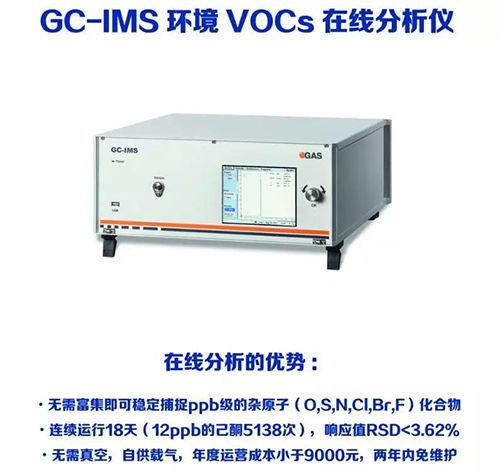GC-IMS环境气体分析仪,专注环境中痕量VOCs的检测,在无需样品预浓缩的情况下检出限可低至ppbv级别;仪器内置自动采样装置,分析前软件可内置待测目标物标准曲线,检测后屏幕实时显示目标物浓度;仪器亦可设置报警阈值,超出阈值后机器自动报警;仪器体积小、重量轻、便携性能好、检测速度快、可车载,在很多环境检测领域均有重要用途、/p>