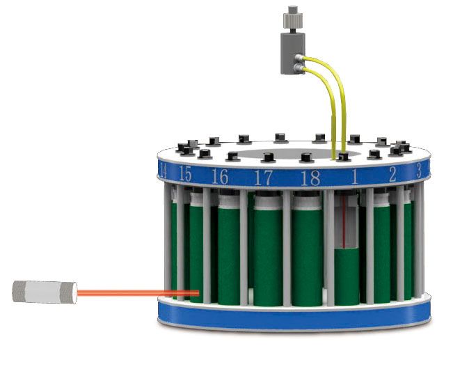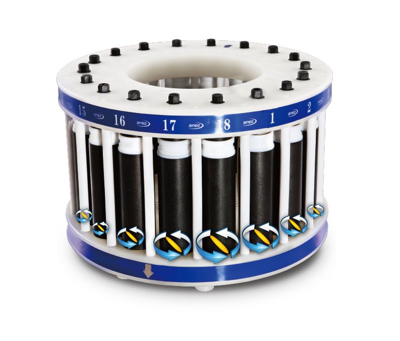 2.高通量罐架UTH-Caro设计将微波磁场在旋转中搅拌均匀,保证高通量样品消解均匀 高通量罐架UTH-Caro设计,金属部件设计可以让炉腔内的微波场随着罐架的旋转而搅拌,使多?00个高通量消解罐在微波场分布均匀的状态下加热