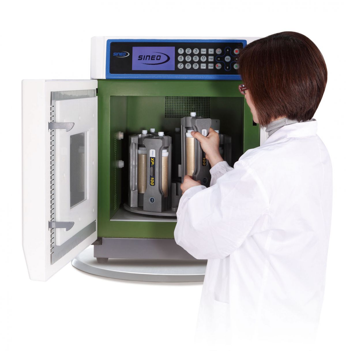 7.突破业界极限?00罐超高通量密闭微波消解罐及转子,成功应用在国家地质实验测试中心 为适应现代高科技分析检测仪器的飞速发展,检测限越来越低,取样量、用酸量也随之减少,空白干扰值下降,而需要检测的样品数量却越来越多了。所以容积小,承压高,超高处理量成了微波消解技术的发展方向。继率先推出国内首台40罐微波消解仪后,新仪公司与国家地质实验测试中心合作,创造性地开发了业界唯一?00罐超高通量微波消解罐及转子。其独有的UTH-Caro超高通量消解罐设计融合了所有高通量产品设计的经验和技术,100罐转子特别适用于有较大样品处理量需求的地质、食品、卫生检验和环境等行业用户?00罐消解罐的容积有15ml, 30ml?0ml三个规格,也可根据用户要求订制
