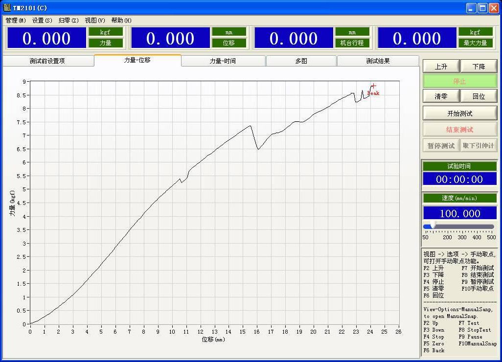 软件特点9/strong> 一. 全电脑伺服控制材料试验机软件功能介绍: A. 测试标准模块化功胼提供使用者设定所需应用的测试设定,范围涵盖GB、ASTM、DIN、JIS、BS…等测试标准规范?nbsp; B. 试品资料:提供使用者设定所有试品数据,一次输入永久重复使用。并可自行增修公式以提高测试数据性、/strong> C. 双报表编辐完全开放式使用者编辑报表,供测试者选择喜好的报表格式(测试程序新增内建EXCEL报表功能扩展了以往单一专业报表的格局(/strong> D. 各长度、力量单位、显示位数采用动态互换方式,力量单位T、Kg、N、KN、g、lb,长度单位mm、cm、inch、/strong> E. 图形曲线尺度自动最佳化(Auto Scale),可使图形以最佳尺度显示。并可于测试中实时图形动态切换。具有荷?位移、荷?时间、位?时间、应?应变荷重-2点延伸图,以及多曲线对比、/strong> F.测试结果可以EXCEL格式的数据形式输出、/strong> G. 测试结束可自动存档、手动存档,测试完毕自动求算最大力量、上、下屈服强度、环法、逐步逼近法、非比例延伸强度、抗拉强度、抗压强度、任意点定伸长强度、定负荷延伸、弹性模量、延伸率、剥离区间最大值、最小值、平均值、净能量、总能量、弯曲模量、断点位移x%荷重、断点荷重X%位移、等等。备份:测试数据可保存在任意硬盘分区、/strong> H.软件具有历史测试数据演示功能、/strong> ? 全电脑伺服控制材料试验机附件 A.一年保固书及中文操作说明书各一份、/strong> B.随机赠送标准拉力夹具一? C.拉力机专用测试软件一份、/strong> D.品牌电脑一套、彩色打印机一?/strong> ? 全电脑伺服控制材料试验机可测试项?/span> 普通测试项目:(普通显示值及计算值) ●拉伸应力 ●拉伸强?/strong> ●扯断强度 ●扯断伸长率 ●定伸应力 ●定应力伸长玆/strong> ●定应力力值 ●撕裂强?/strong> ●任意点力值 ●任意点伸长玆/strong> ●抽出力 ●粘合力及取峰值计算倻/strong> 弹性系数即弹性杨氏模野/strong> 1?/strong>定义:同相位的法向应力分量与法向应变之比。为测定材料刚性之系数,其值越高,材料越强韧、/strong> 2、比例限:荷重在一定范围内与伸长可以维持成正比之关系,其最大应力即为比极限、/strong> 3、弹性限:为材料所能承受而不呈永久变形之最大应力、/strong> 4、弹性变形:除去荷重后,材料的变形完全消失、/strong> 5、永久变形:除去荷重后,材料仍残留变形、/strong> 6、屈服点:材料拉伸时,变形增快而应力不变,此点即为屈服点。屈服点分为上下屈服点,一般以上屈服点作为屈服点、/strong> 屈服(yield);荷重超过比例限与伸长不再成正比,荷重会突降,然合在一段时间内,上下起伏,伸长发生较大变化,这种现象叫做屈服、/strong> 7、屈服强度;拉伸时,永久伸长率达到某一规定值之荷重,除以平行部原断面积,所得之商、/strong> 8、弹簧K值;与变形同相位的作用力分量与形变之比、/strong> 9、有效弹性和滞后损失:在屈服强度试验机上,以一定的速度将试样拉伸到一定的特长率或拉伸到规定的负荷时,测定试样敏缩时恢复的功和伸张时消耗的功之比的百分数,即为有效弹性;测定试样伸长、收缩时所缩失的能与伸长时所消耗的功之比的百分数,即为滞后损失、/strong> 主要配置如下9/strong> 高精度进口美?nbsp; 传感?nbsp;1?/strong> (进口传感器,精度高,重复性好,不会产生零点漂移,经久耐用。国产传感器,灵敏度低,不能清零。每次测试数据偏差较大。) 进口伺服控制系统 1 奖/strong> AC进口伺服电机 1 ?/strong> (进口伺服系统是通过机械或位移速度、加速度的反馈控制系统,其作用是使输出的机械位移(或转角)准确地跟踪输入的位?或转?比普通电机,功耗低,扭矩大,速度控制广面精准,高低数运转扭矩相当,有带伺服闭环控制,高精度制动。一般使用于自动化,精密仪器、精密设备。) 台湾高精度滚珠轴?滚珠丝杆 2奖/strong> (非梯形螺杆,梯形螺杆燥音大,易磨损,间隙大,精度低。高精度滚珠轴承+滚珠丝杆成本是普通梯形丝杆的好几倍,其优点,间隙小,移动距离精度高,能保证电机匀速直线运动,摩擦小,燥间小,经久耐用。) 电机直接配套台湾减数机构 1奖/strong> ? 全电脑伺服控制材料试验机软件操作界面