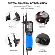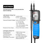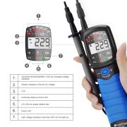 HP-38A电压测试仪屏幕采用液晶显示,读数更清晰,轻便小巧,顶部照明。该电压测试仪可自动关机,可用于测量电流和电压。该产品高度准确、安全且易于使用、/p> 非接触式交直流电压测试仪 HP-38A ?/p> 易于使用 - 只需将尖端接触到终端 条、插座或电源线;当尖端发光时 并且设备发出哔哔声,你知道有电压 展示、/p> 测量 AC/DC 电压的压力,a 你不应该错过的好测试员、/p> 该液晶电压测试仪可以方便地测量交?直流电压、/p> 产品规格9/p> 型号:HP-38A 电压范围?2-690V 交流/直流 欧洲标称电压?2/24/50/120/230/400/690V 容差(阈值电压)灯亮 75V(50V LED)?85V(24V LED)?7.55V(50V LED)、标称电压的 75%5%(120/230/400/690V LED) 范围/分辨率:7-690V/1V(自动量程) 精度?235C) (3%+3) 5V 超量程指礹/p> 所有电压: LED 亮起 响应时间?lt;1s 在每个电压的 90% 电压范围?0-690V 交流/直流 系统 三相四线制交流电 频率?0Hz?0Hz 相位范围?205?/p> 检测范围:0-550K(2O0K) 测试电流:大?.5uA(电池3V 0Q) 电池?*1 5V(IEC LR03 1 5Vx2) 温度?10?5 运行?20?Oℂ/p> 湿度:最 85% 相对湿度 工作温度?10?5 / 14?31℈/p> 工作湿度:≤85% 相对湿度 储存温度?20?0 / -4?40℈/p> 物品尺寸:大?5*5.5*2cm 重量:大?86g |