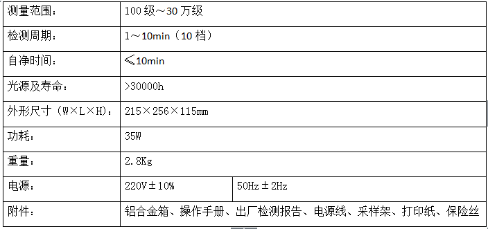 CLJ-BII 激光尘埃粒子计数器采用半导体激光光源,LED显示。仪器本身体积小、重量轻、检测精度高。CLJ-BII 激光尘埃粒子计数器可广泛应用于电子、光学、化学、食品、化妆品、医药卫生、生物制品、航空航天等部门 CLJ系列的激光尘埃粒子计数器是用于检测无尘室车间空气洁净度级别的计量仪器。符合计量局颁布的JJF1190-2008《尘埃粒子计数器校准规范》规程的技术要求,整机功能采用微电脑控制处理,可直接打印检测结果、/strong> CLJ-BII激光尘埃粒子计数器一次采样可同时测得六个粒径通道的尘埃粒子数,并能选择观察其中某一粒径通道粒子的数目及其变化情况,可以满足医药行业(制药厂、药检所、医院手术室等);电子行业(半导体工厂、精密机械的生产加工等);食品卫生行业(乳制品、塑封肉食品、调味食品、农产品等的精加工);过滤器的生产厂家,检验过滤器的质量及效率等;光学、及航空航天等领域的精加工、精密试验所需的洁净室(区)的检测需要、/strong>