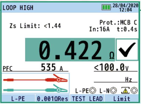 该功能将自动检查TN(或TT接地回路)的测量回路阻抗是否足够低,足以使MCB/保险?RCD跳闸(断开),并在显示屏上给出通过或失败的结果.