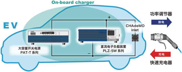 V2H/ L EV模拟器例在使用EV车来开发快速充电桩V2H/L机器(功率变换?时,由于有损坏EV的风险与各种充电规范(CHAdeMo,Combo,GB?未对应的课题。所以推荐使用EV模拟器,这样并非使用EV(实车),就可以对各种充电规格的充电以及V2H指针的充电,供电装置给予评价、/span>