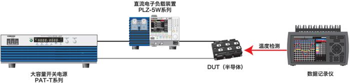 动力型半导体评价试验系统侊/span>半导体的过热试验,测量大电流高速启动时半导体的温度变化等。在需要数百A~几千百A在数ms量级的上升沿时,使用大功率的开关电源PAT-T系列就可实现。如果搭配PLZ-5W系列将会更加高速化、/span>