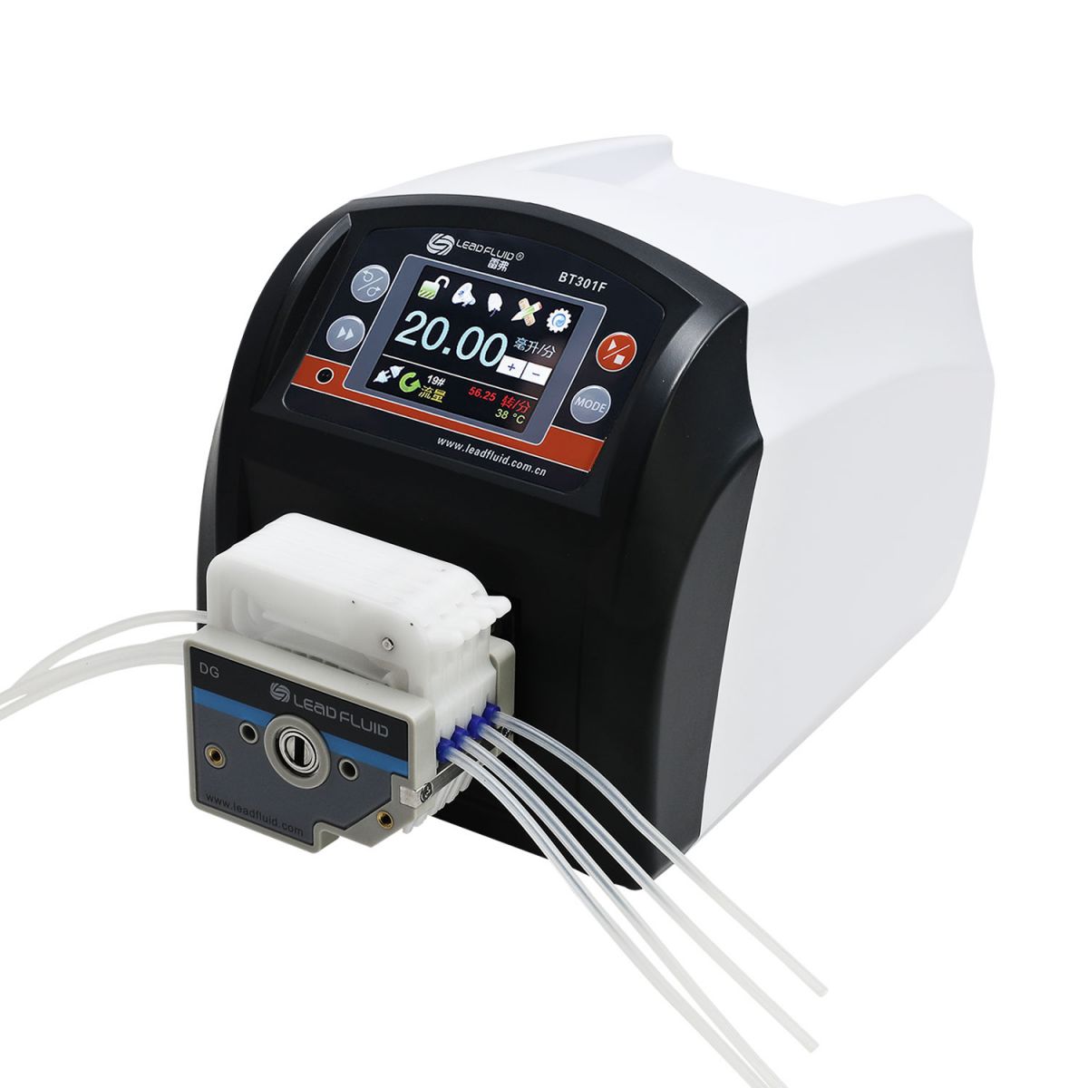 BT101F分配型智能蠕动泵,采用彩色液晶和触摸屏技术,操作界面简单,直观明了。主要适用于各种复杂的液体定量分配、精确计量和定量给料。对液量分装精度要求高时,使用液量分配模式更加方便;对产量要求高时,使用时间分配模式更加方便;需要将一定液体分装为若干份液体时请使用复制分配模式。设置为流量模式时,完全等同于一台流量型蠕动泵。为了减小不必要的风扇噪音,采用了智能温控技术。在RS485通讯中,因为采用了MODBUS协议,更易于与其他控制设备如计算机,人机界面,PLC等连接、/span>