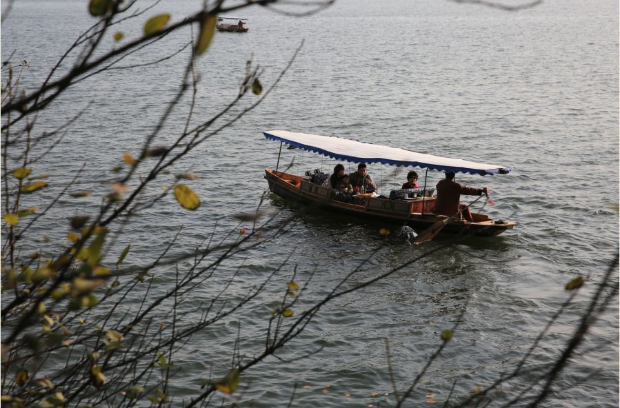 行程过半,游客也渐渐多了起来,西湖中荡漾的小船,游客开心的笑声,又仿佛是一幅活动的画卷,美不胜收、/span>