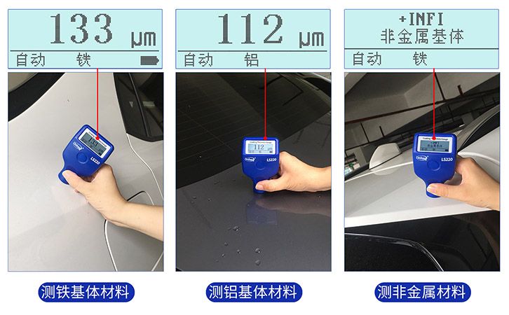 5. 二手车漆膜仪探头为铁铝两用型,可自动识别测量基体,并快速转换测量模式,或者提示被测物为非金属,非铁基体、/span>