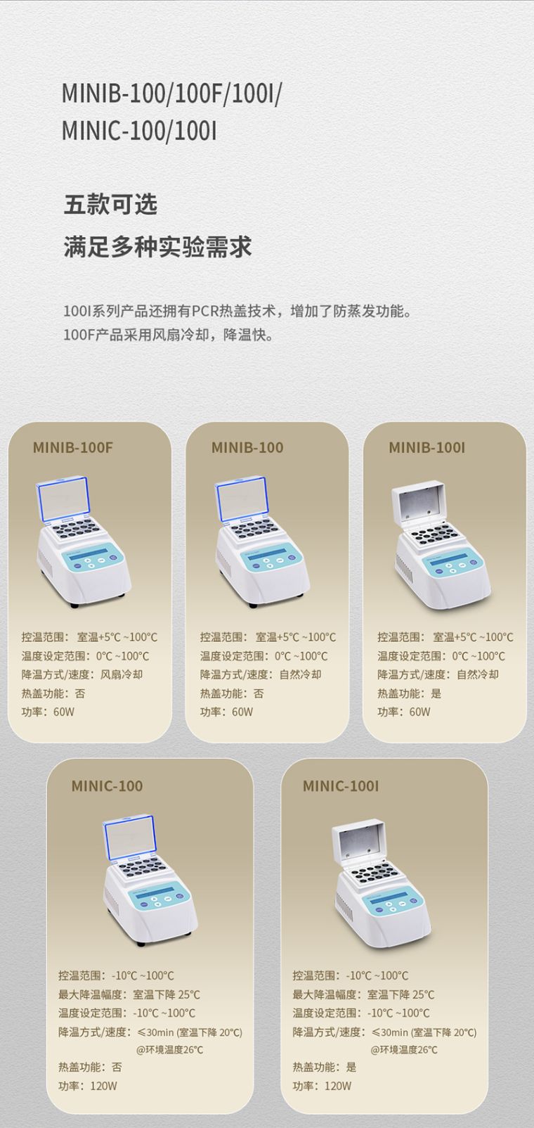 MINIC-100I迷你金属浴是采用微电脑控制半导体制冷或加热膜加热的恒温金属浴产品,是可适用于车载电源的掌上型恒温金属浴。体积特小,重量轻,移动方便,适合各种场合使用?00I系列产品还拥有PCR热盖技术,增加了防蒸发功能?00F产品采用风扇冷却,降温快、/p>