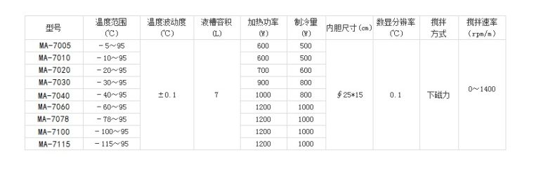 集低温、恒温、搅拌于一体的实验装置,适用于科研、生物、物理、医药、化工等部门进行低温实验,可代替干冰和液氮做低温反应和相关设备提供低温条件,又可以作为低温水槽做运用粘度的测试。底部装强磁力搅拌,使槽内温度更均匀,适用于低温恒温的化学合成实验、/p> 主要特征: ●底部装有磁力搅拌,搅拌速度可调、/p> ●全封闭压缩机组制冷,制冷系统具有过热、过电流多重保护装置、/p> ●循环泵可以把槽内被恒温液体外引,建立**恒温场、/p> ●槽内冷液可外引,冷却机外实验容器,也可在槽内直接进行低温、恒温实验、/p> ●采用XMT模拟数字PID自动控制系统,温度数字显示、/p> ●内胆为304不锈钢,清洁卫生,美观耐腐蚀、/p> ●采用圆桶式内胆,搅拌更加均匀无死?可采用槽内部无盘管设计,可以充分利用槽内实验空间、/p> ●备有下放液口方便更换介质、/p> ●加装脚轮,移动更方便、/p>