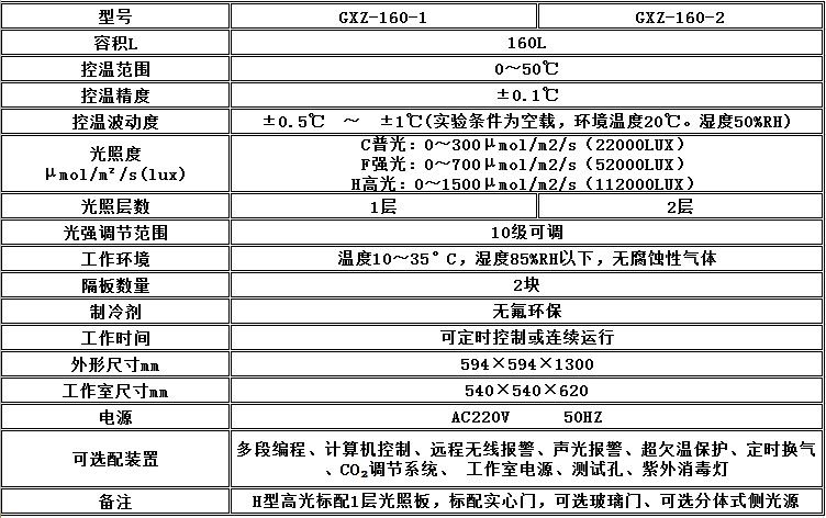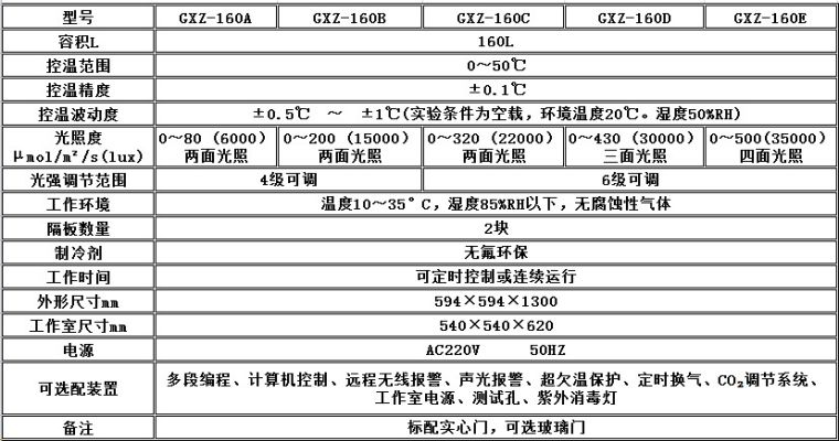 GXZ-160 GXZ-280 GXZ-380垊/p> 一、侧光源光照培养箱主要技术参数: