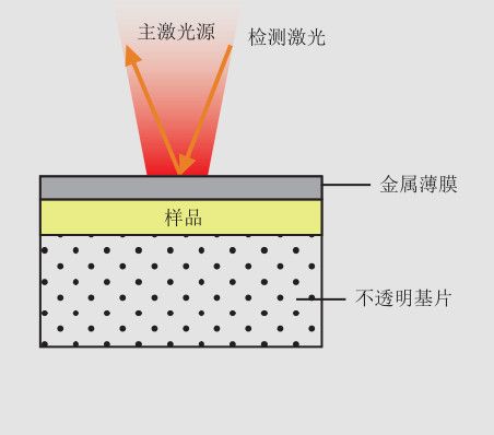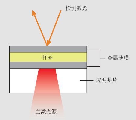 | 主激光源从反面加热薄膜,检测激光从正面测量薄膜的温度升高过程,从而计算薄膜的导热性能参数。此模式适用于透明基片、/span> | 主激光源从正面加热薄膜,检测激光从正面测量薄膜的温度下降过程,从而计算薄膜的导热性能参数。此模式适用于不透明基片、/span> |