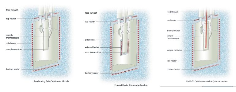仪器针对不同的应用,提供三种可更换的量热仪模块。加速量热仪(ARC?)模块能够用于标准的工艺安全测试。外部加热器(Scanning)模块可进行类似 DSC 的升温扫描测试,不仅能用于研究放热反应,也可用于研究吸热反应。纽扣电池测量模块则用于纽扣电池充放电与温度扫描下的性能研究、/p>