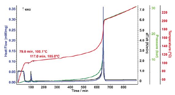 在线性升温速率或恒定的功率下,可进行类 DSC 的扫描模式测量。相 DSC 的优点在于样品量大,且可获取封闭反应体系的压力变化过程、/p>