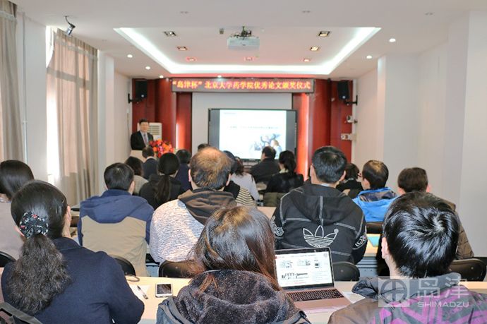 颁奖仪式结束后,北京大学药学院的获奖同学为与会者分享了获奖论文。来自岛津公司分析测试仪器市场部的潘晨松博士和岛津(上海)实验器材有限公司的牛亚茹经理也做了专题报告、/p>