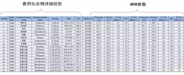 岛津LC-MS/MS MRM兽药数据库包含内容及特点
