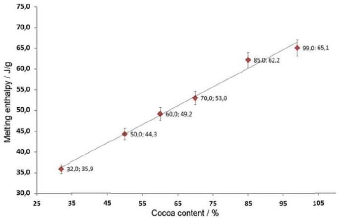 | ?.不同巧克力的可可含量与熔融热焓关糺/span> |