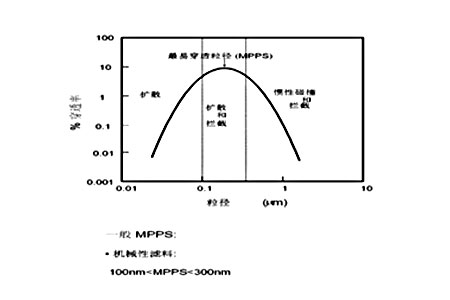 这几种过滤机制中,颗粒越小时??沉积效应越强,颗粒越大时??效果越好。也就是说并不是颗粒越小拦截效果越差,也不是颗粒越大拦截就越容易,下图是综合4种过滤机制的协同作用下滤料穿透率和粒径关系图、/p>