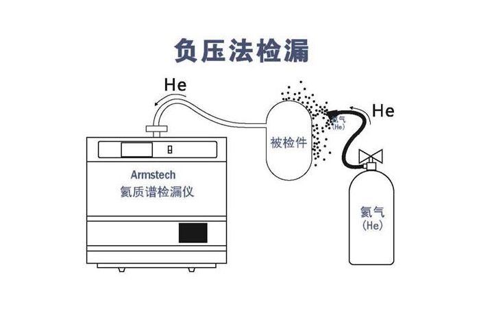 真空法是一种常用的氦检漏方法。在这种方法中,被检测件被放入一个密闭的真空室内。首先,对真空室进行抽真空处理,然后向被检测件中充入一定压力的氦气。通过监测真空室内的氦气浓度变化,可以判断被检测件是否存在泄漏。这种方法适用于小型部件或组件的检漏、/p>