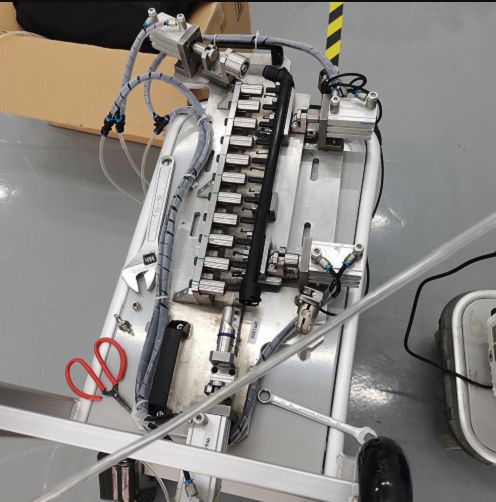 案例:对于水冷管气密性检测,采用传统工艺即氦质谱检漏仪负压法检漏。下图展示的就是由安徽歌博科技为业内某知名企业供给特斯拉汽车的水冷管研发制作的氦检装置。效果图如下9/p>