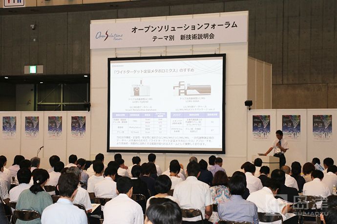 JASIS2017 设置了特设会场“开放式解决方案论坛”。原材料的开发及品质管理是日本制造业竞争力的核心。开放式解决方案论坛以不同主题的新技术说明会的形式举办。岛津公司基于当天的主题进行报告。在环境主题环节,岛津公司专家做了题为“关于RoHS法规物质的筛查分析”的报告,RoHS法规物质分析方法在国际标准IEC62321中有所规定,有关国际标准中的筛查方法Py-GC/MS与EDXRF法,结合具体事例说明其检测步骤及检测结果。在食品主题环节,岛津专家做了题为“岛津公司推荐的有效食品代谢组学研究~探索味道成分、提高质量、实现附加价值的可视化~”的报告,在介绍分析设备和代谢物数据库等工具和实际食品评估事例的同时,还介绍了用于锁定与食品的味道和香味、品质等有关的成分、样品间比较评估等的代谢组学技术。在汽车主题环节,岛津专家做了题为“有助于低油耗研究的油润滑界面的微观观察及今后的展望”的报告,介绍了观察机动车油固液界面吸附与覆膜的新方法,并阐明了石油中的添加剂和固体表面材料对润滑性能的影响、/span>