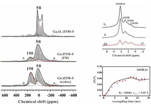 Ga/ZSM-5分子筛上71Ga QCPMG MAS NMR???sup>1H-71Ga S-RESPDOR双共?nbsp;NMR?右上)咋sup>1H-71Ga核间距离测量结果(右下)