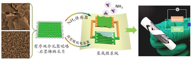 近日,中国科学院大连化学物理研究所二维材料与能源器件研究组研究员吴忠帅团队与化学传感器研究组研究员冯亮团队合作,设计并可控制备出一种有序双介孔聚吡?石墨烯纳米片,以其作为双功能活性材料构筑出高性能、柔性化的微型超级电容器-气体传感器平面化集成微系统、/p>