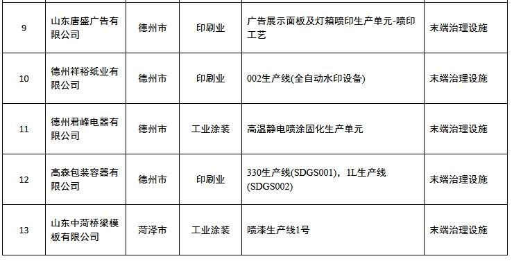 近日,山东环境厅发布第三批豁免挥发性有机物末端治理企业名单,共?3家。详情如下: