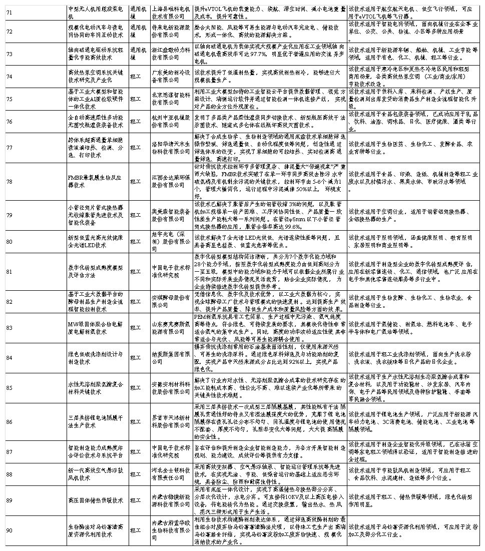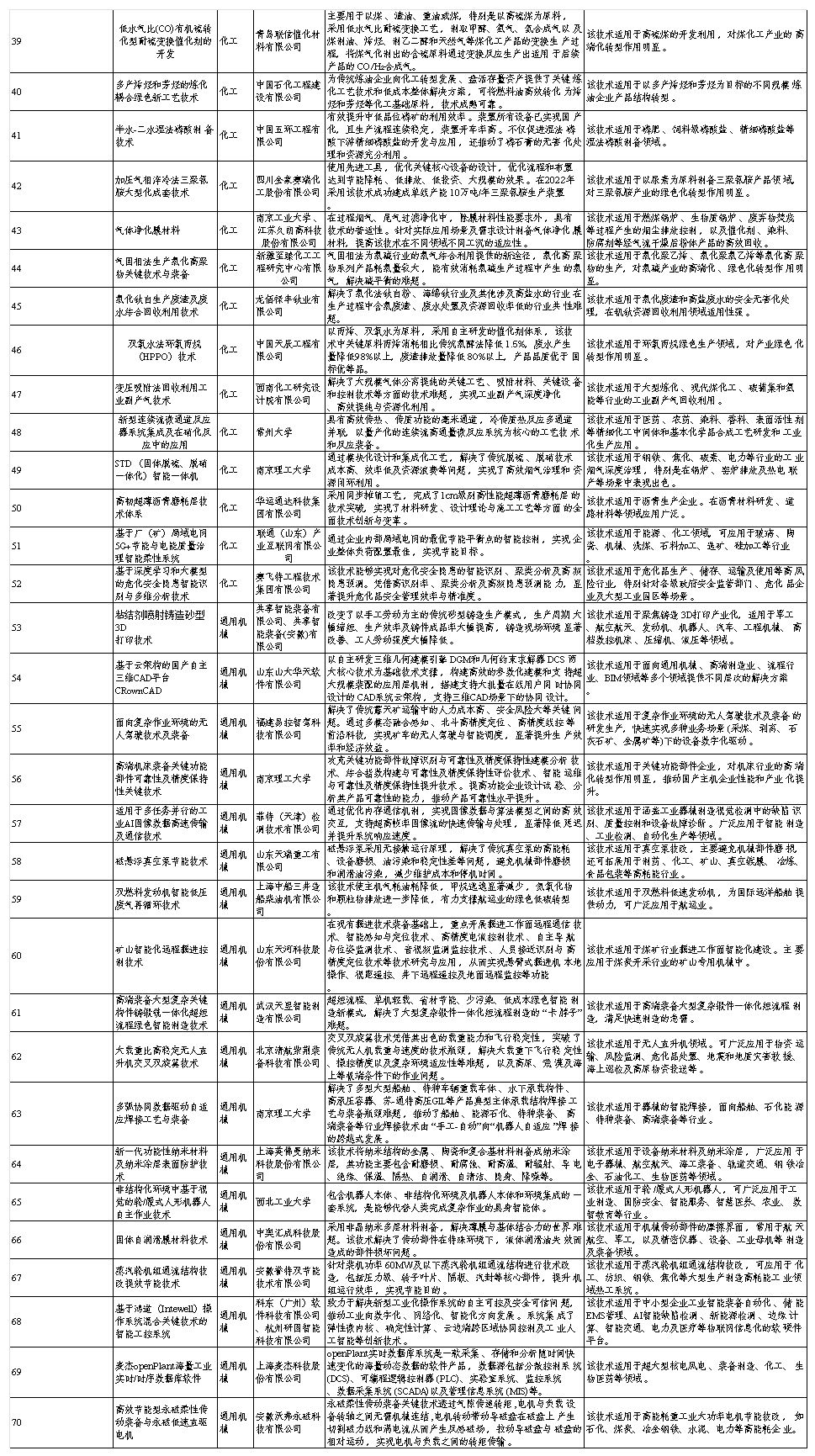 通过梳理名单发现,浅冷油吸收法炼厂干气回收利用成套技术、难降解化工废水电催化氧化关键技术、重油高效催化裂解(RTC)成套技术等33项化工技术上榜;粘结剂喷射铸造砂型 3D打印技术、基于云架构的国产自主三维CAD平台 CRownCAD、面向复杂作业环境的无人驾驶技术及装备等21项通用机械技术上榜;高效热泵空调系统关键技术研究及产业化、基于工业大模型和智能体的工业AI质检软硬件一体化技术、全自动高速柔性多功能无菌吹瓶灌装装备技术等17项轻工技术上榜。